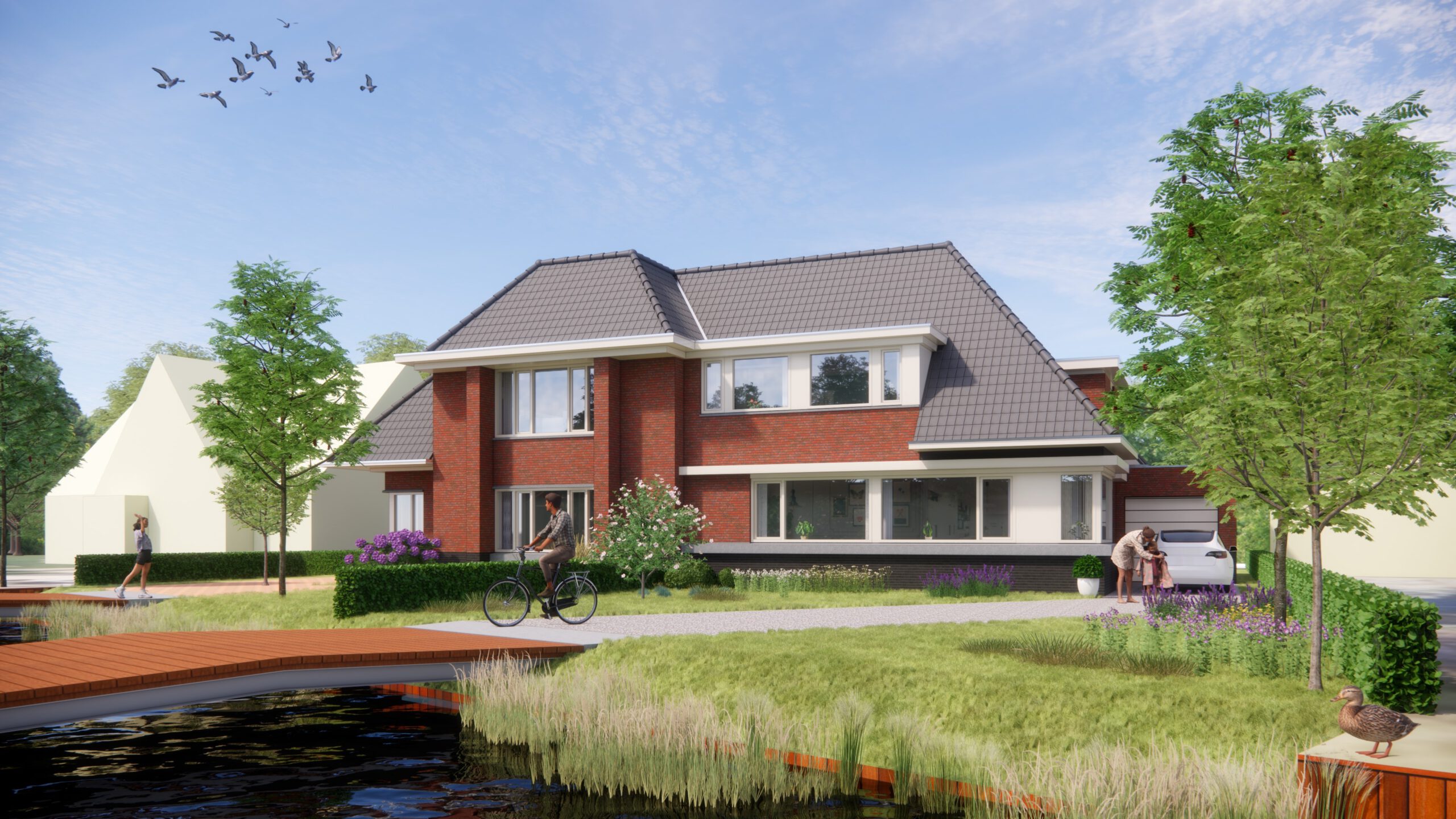 Op uw eigen schiereiland aan de rand van Overschie, op loopafstand van Park 16-hoven, worden deze 2 nieuwbouwwoningen gebouwd als 2 onder 1 kap, beiden op een royaal perceel en met een eigen brug. De getoonde garage(s) op de impressie kan optioneel als meerwerk worden gebouwd.