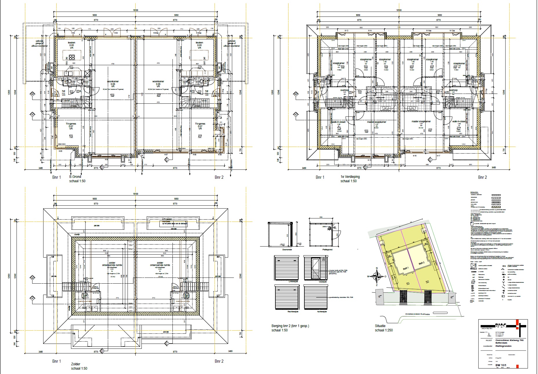 De woningoppervlakten zijn ca. 259m ² en 255m ² per woning.